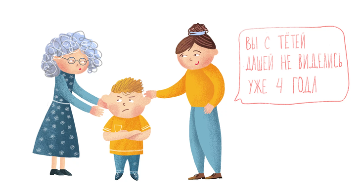родственники стремятся непременно потискать ребенка, хотя ему этого не хочется,
